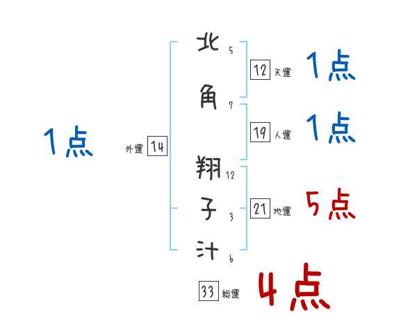 北角翔子汁さんの画数の鑑定結果