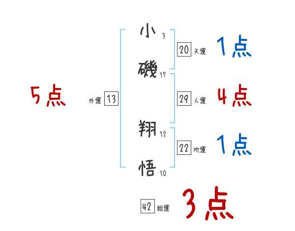 小磯翔悟さんの画数の鑑定結果