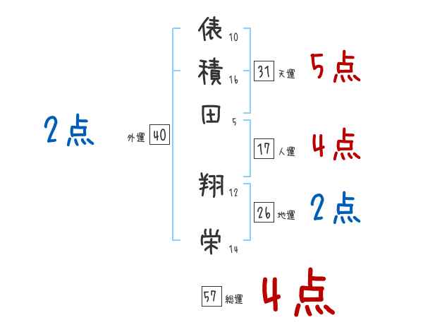 俵積田翔栄さんの画数の鑑定結果