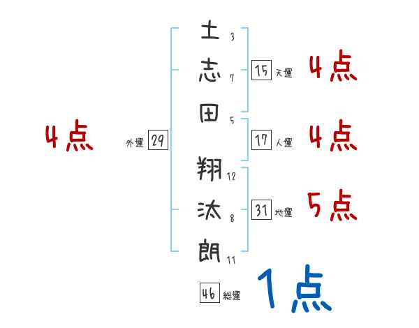土志田翔汰朗さんの画数の鑑定結果