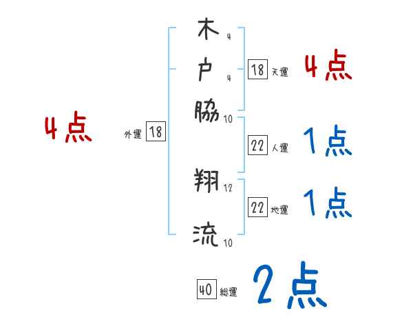 木戸脇翔流さんの画数の鑑定結果