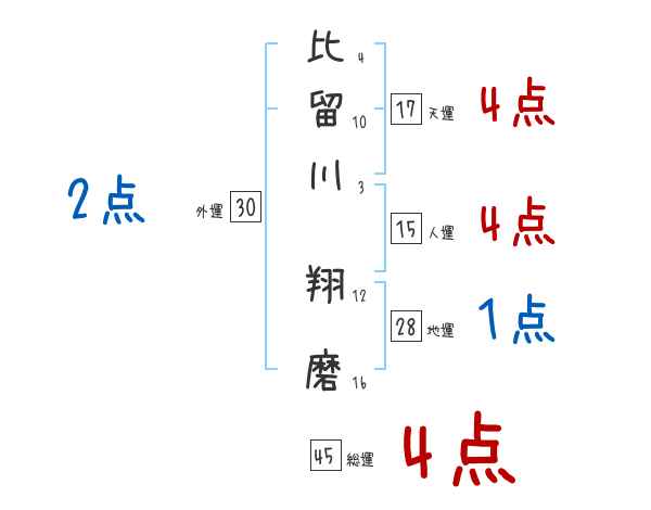 天運![]() | 比留川翔磨さんの天運は17画の4つ星!積極的な行動力。地位を気づき財産を手に入れる。純粋な心と直感力。 家系が持つ宿命的な運勢を表します。祖先から受け継いだ苗字ですので自分の力が及びません。家柄を象徴します。 |