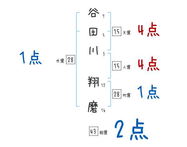谷田川翔磨さんの画数の鑑定結果