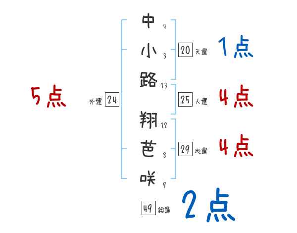 中小路翔芭咲さんの画数の鑑定結果