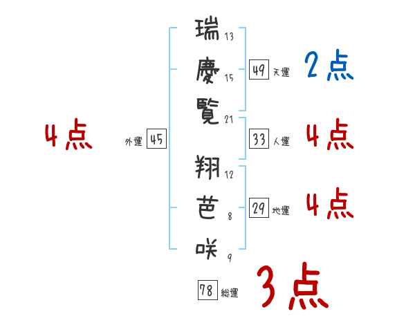 瑞慶覧翔芭咲さんの総運は78画の3つ星