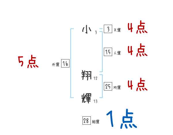 小翔輝さんの画数の鑑定結果