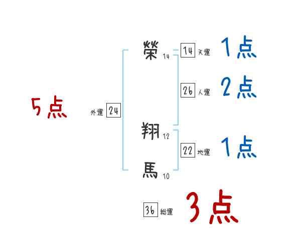 外運![]() | 榮翔馬さんの外運は24画の5つ星!家庭運が良く順調な人生。金運にも恵まれる。 生活面を象徴する運勢です。外部から受ける影響力を表し、結婚運、家庭運や職場、環境への順応性を表します。 |
