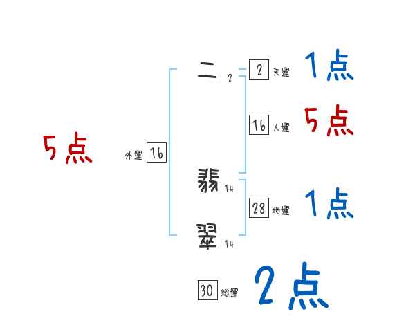 二翡翠さんの画数の鑑定結果