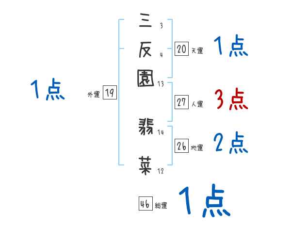 外運![]() | 三反園翡菜さんの外運は19画の1つ星!優れた才能を持ちますが、協調性が足りないことも。周りの人と協力する事を意識しましょう。 生活面を象徴する運勢です。外部から受ける影響力を表し、結婚運、家庭運や職場、環境への順応性を表します。 |