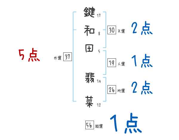 鍵和田翡菜さんの画数の鑑定結果