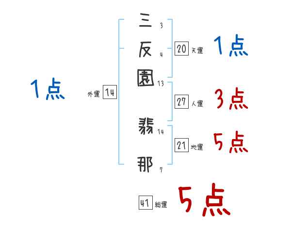 外運![]() | 三反園翡那さんの外運は14画の1つ星!人に対して優しいがストレスを溜め込みがち。人間関係のトラブルを避けるよう気をつけましょう。 生活面を象徴する運勢です。外部から受ける影響力を表し、結婚運、家庭運や職場、環境への順応性を表します。 |