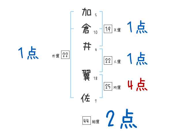 加倉井翼佐さんの画数の鑑定結果