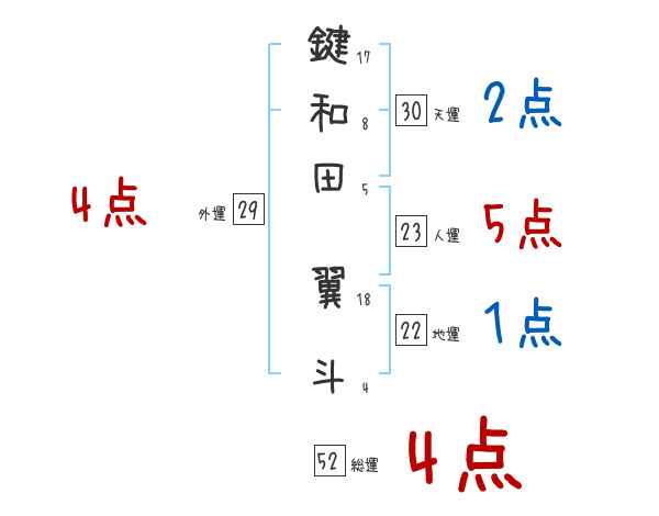鍵和田翼斗さんの画数の鑑定結果