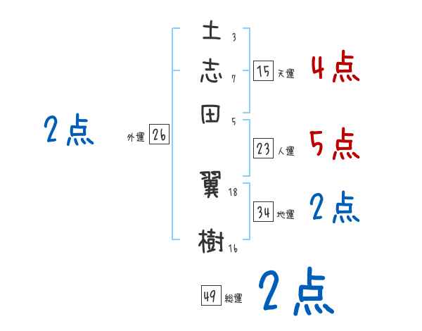 土志田翼樹さんの画数の鑑定結果