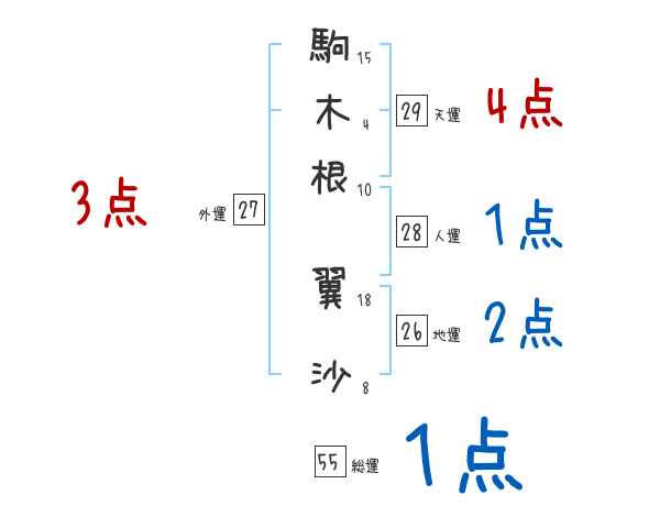 天運![]() | 駒木根翼沙さんの天運は29画の4つ星!完全主義で才能がある。厳格な心の持ち主。 家系が持つ宿命的な運勢を表します。祖先から受け継いだ苗字ですので自分の力が及びません。家柄を象徴します。 |