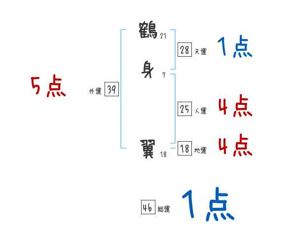 鶴身翼さんの画数の鑑定結果