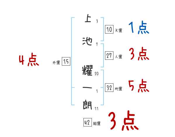 上池耀一朗さんの画数の鑑定結果