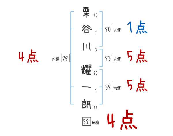 栗谷川耀一朗さんの画数の鑑定結果
