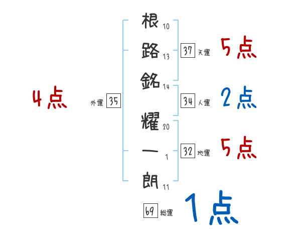地運![]() | 根路銘耀一朗さんの地運は32画の5つ星!柔軟性があり成功する。チャンスが多く金運が良い。 個性を表す基礎的な運勢です。性格形成や対人関係、行動力など家庭環境に影響されます。主に誕生してから20歳くらいまでの若年期の運勢を表します。 |