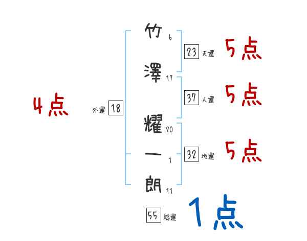 竹澤耀一朗さんの画数の鑑定結果