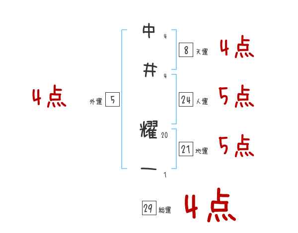 中井耀一さんの画数の鑑定結果
