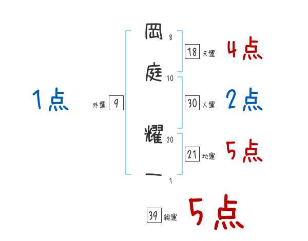 岡庭耀一さんの画数の鑑定結果