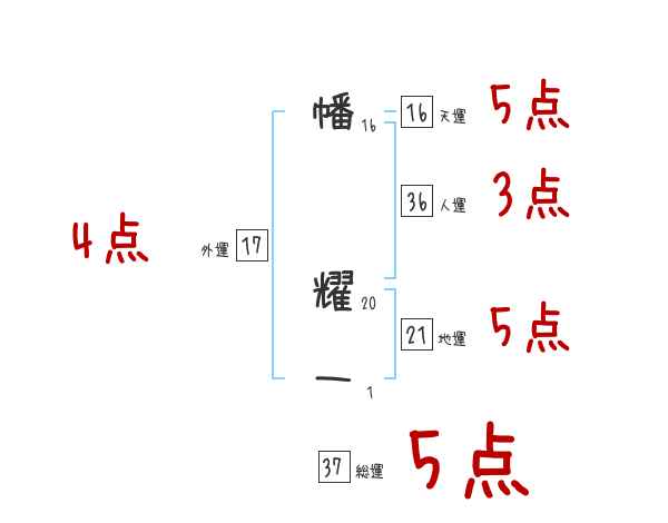 総運![]() | 幡耀一さんの総運は37画の5つ星!努力家で順応性に優れる。現実的な考え方ができ忠実に物事をこなす。 あなたの人生を表す1番重要な運勢です。生涯を通じて影響する総合運となり、主に50歳以降の晩年期に影響を及ぼします。 |