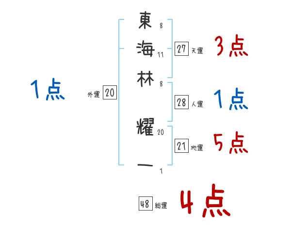 人運![]() | 東海林耀一さんの人運は28画の1つ星!家庭環境に注意。スポーツで活躍できる能力があるかも。 性格や才能などを表す2番目に重要な運勢です。人間関係や協調性、社会的な成功に影響します。主に20歳から50歳ぐらいまでの中年期の運勢を表します。 |