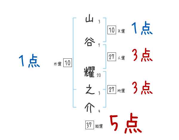 山谷耀之介さんの画数の鑑定結果