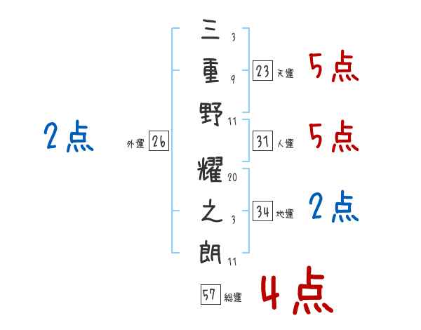 三重野耀之朗さんの画数の鑑定結果