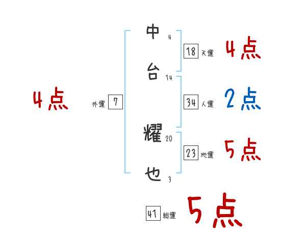 天運![]() | 中台耀也さんの天運は18画の4つ星!情熱的で剛気。忍耐力があり信頼される。 家系が持つ宿命的な運勢を表します。祖先から受け継いだ苗字ですので自分の力が及びません。家柄を象徴します。 |