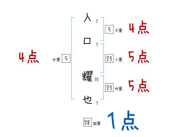 入口耀也さんの画数の鑑定結果