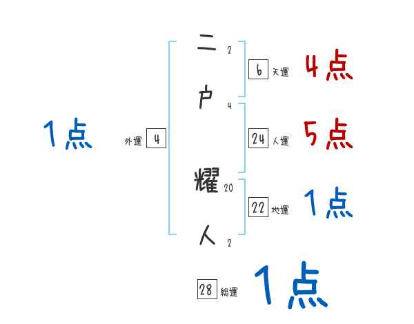 二戸耀人さんの画数の鑑定結果