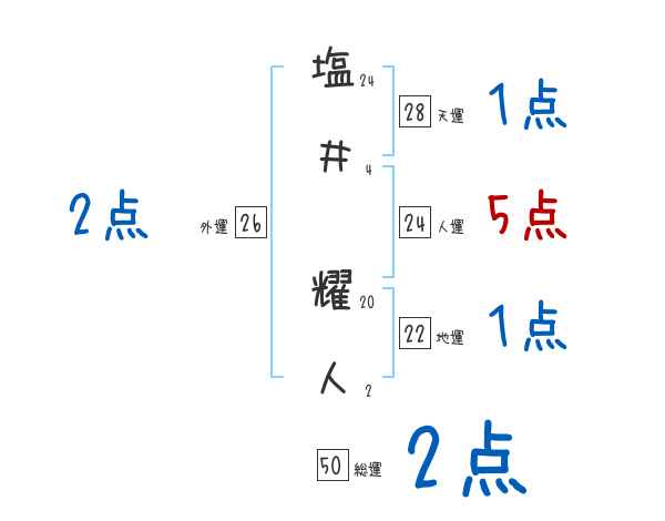 塩井耀人さんの画数の鑑定結果