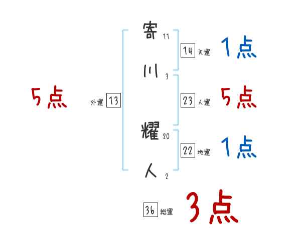 寄川耀人さんの画数の鑑定結果