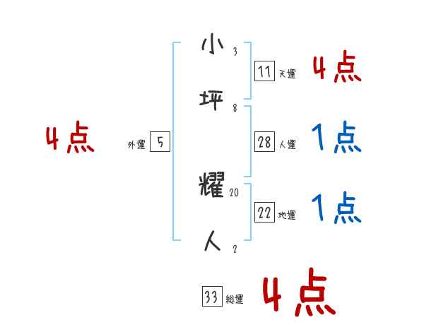 小坪耀人さんの画数の鑑定結果