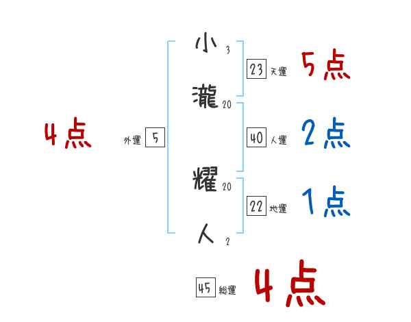 小瀧耀人さんの画数の鑑定結果