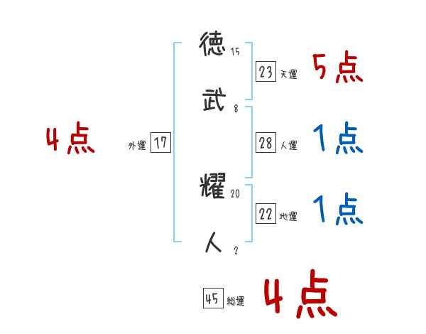 徳武耀人さんの画数の鑑定結果