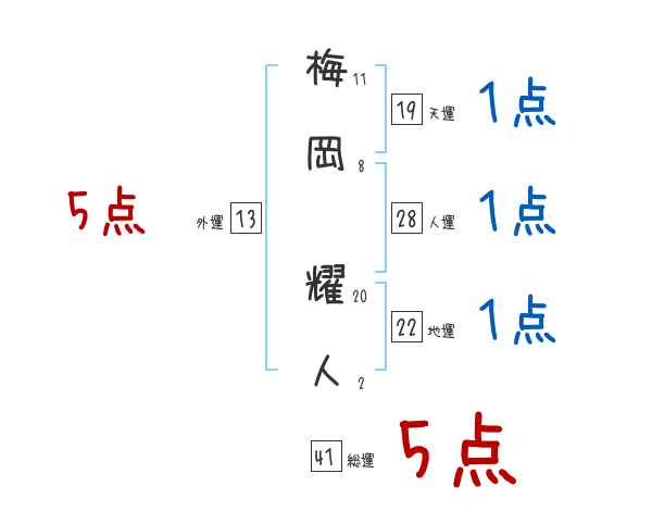 梅岡耀人さんの画数の鑑定結果