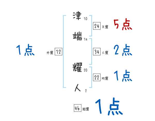 天運![]() | 津端耀人さんの天運は24画の5つ星!家庭運が良く順調な人生。金運にも恵まれる。 家系が持つ宿命的な運勢を表します。祖先から受け継いだ苗字ですので自分の力が及びません。家柄を象徴します。 |