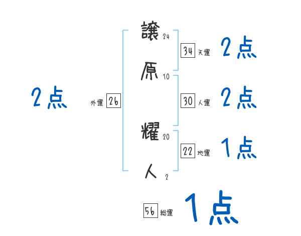 譲原耀人さんの画数の鑑定結果
