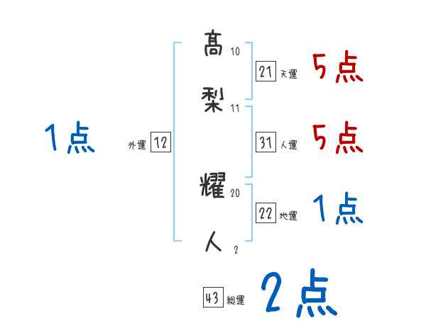 髙梨耀人さんの画数の鑑定結果