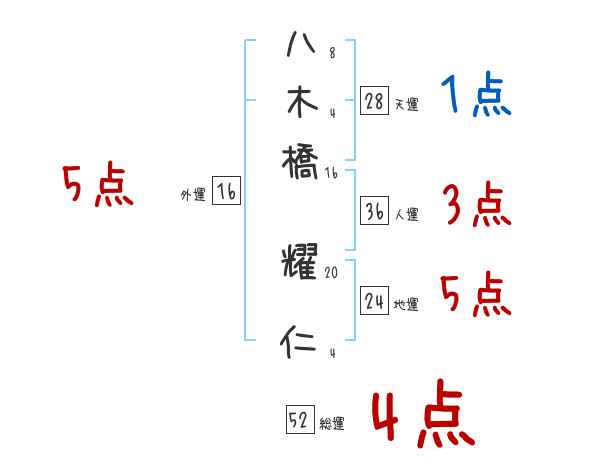 八木橋耀仁さんの画数の鑑定結果