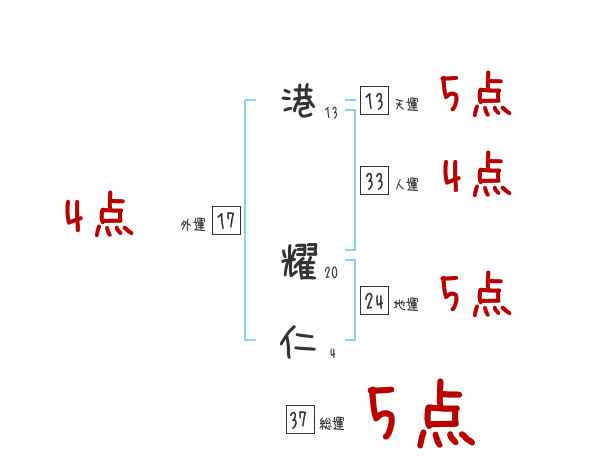 港耀仁さんの画数の鑑定結果