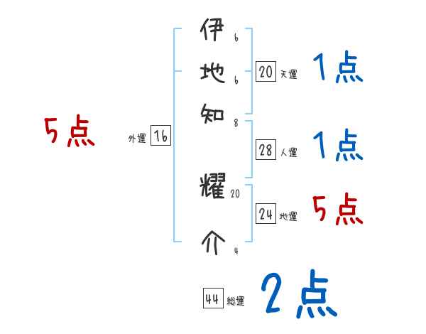 伊地知耀介さんの画数の鑑定結果