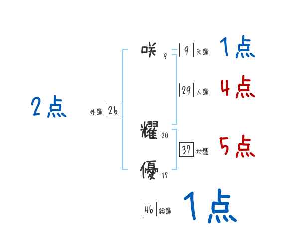 咲耀優さんの画数の鑑定結果