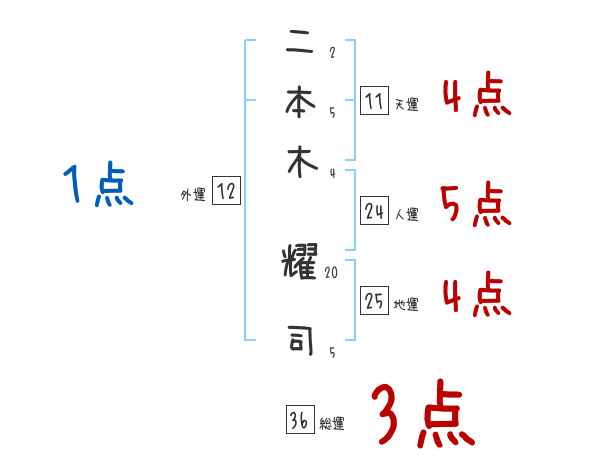 二本木耀司さんの画数の鑑定結果