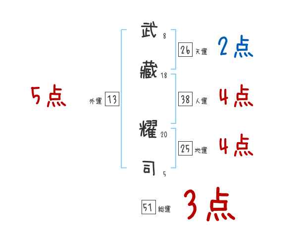 武藏耀司さんの画数の鑑定結果