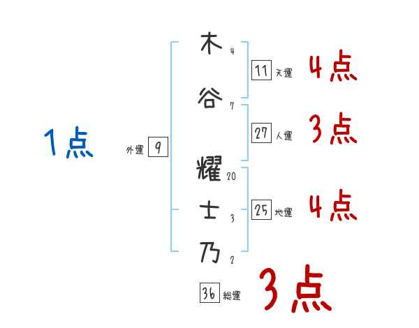 総運![]() | 木谷耀士乃さんの総運は36画の3つ星!先見性が豊かです。多少神経質で苦労することも。 あなたの人生を表す1番重要な運勢です。生涯を通じて影響する総合運となり、主に50歳以降の晩年期に影響を及ぼします。 |