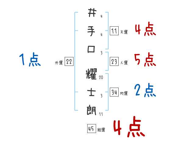 井手口耀士朗さんの画数の鑑定結果